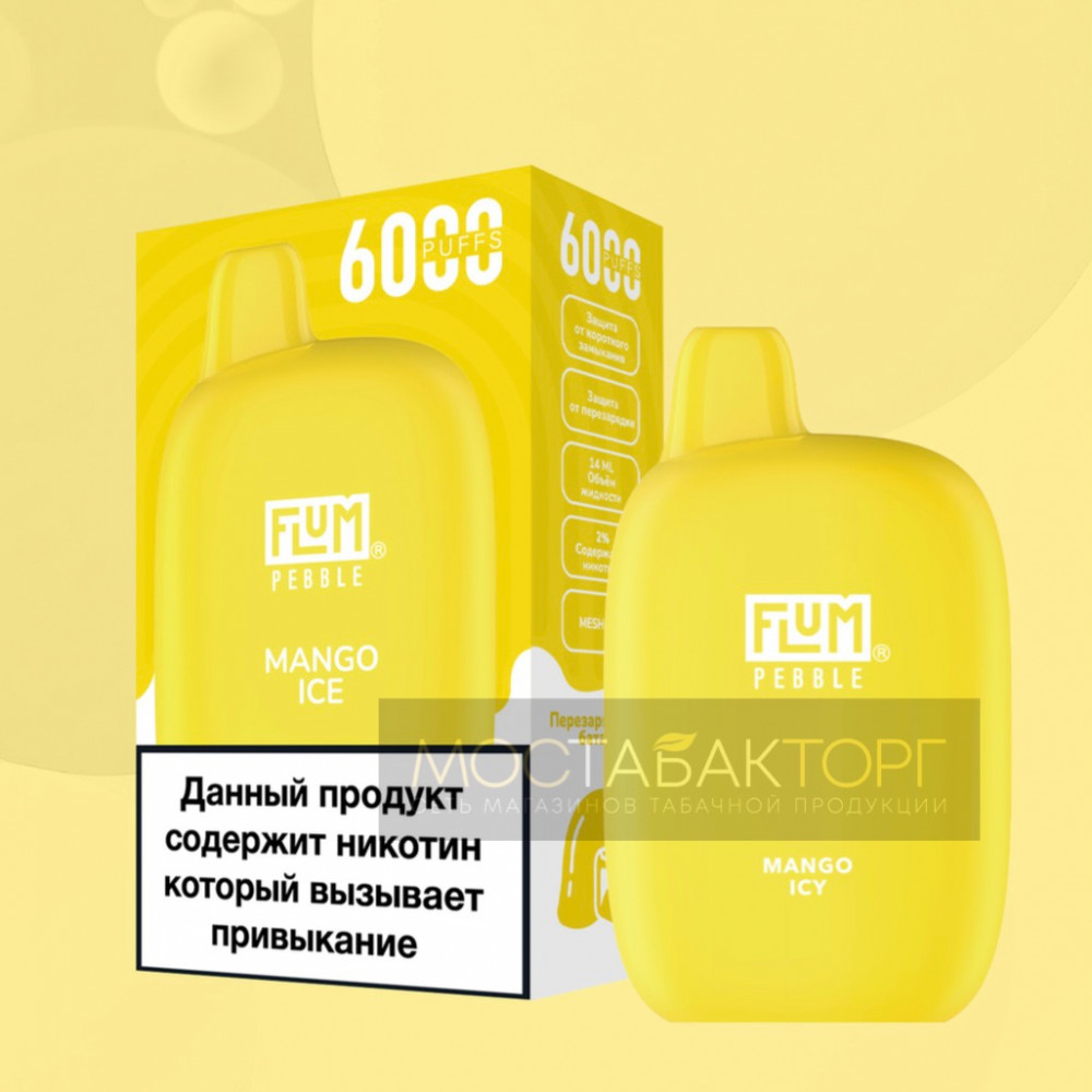 FLUM видыPebble FLUM вкусыМанго Лёд FLUM количество в блоке10 шт