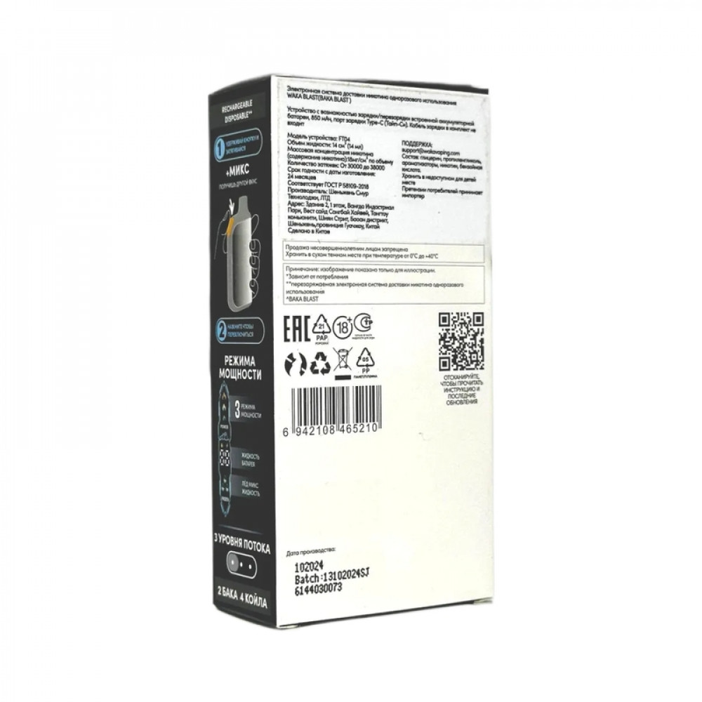 Технические характеристики WAKA BLAST 38000 Hard - Кислое яблоко + лед микс