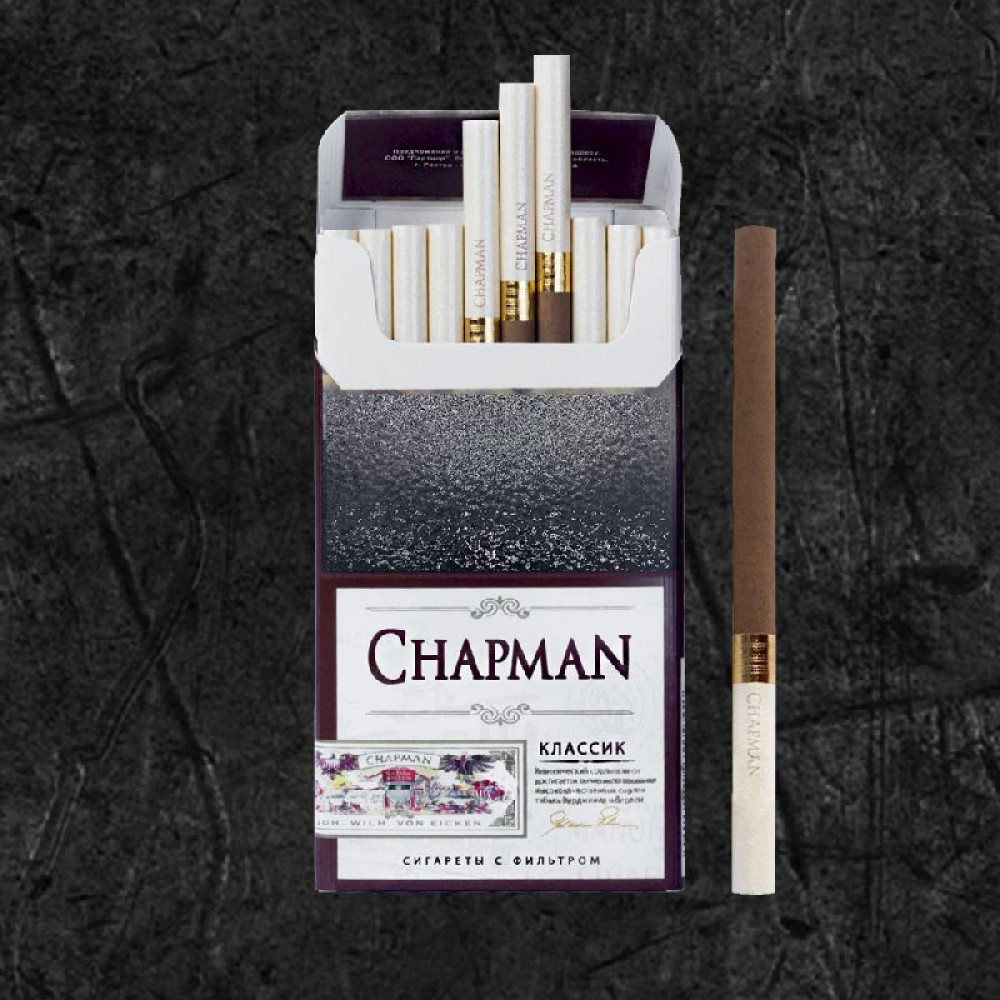 • Стильная упаковка: дизайн пачки сигарет Chapman выполнен в элегантной и минималистичной манере, идеально дополняющей образ современного человека.